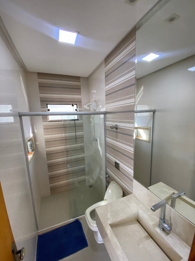 • Banheiro com box em blindex e espelho
