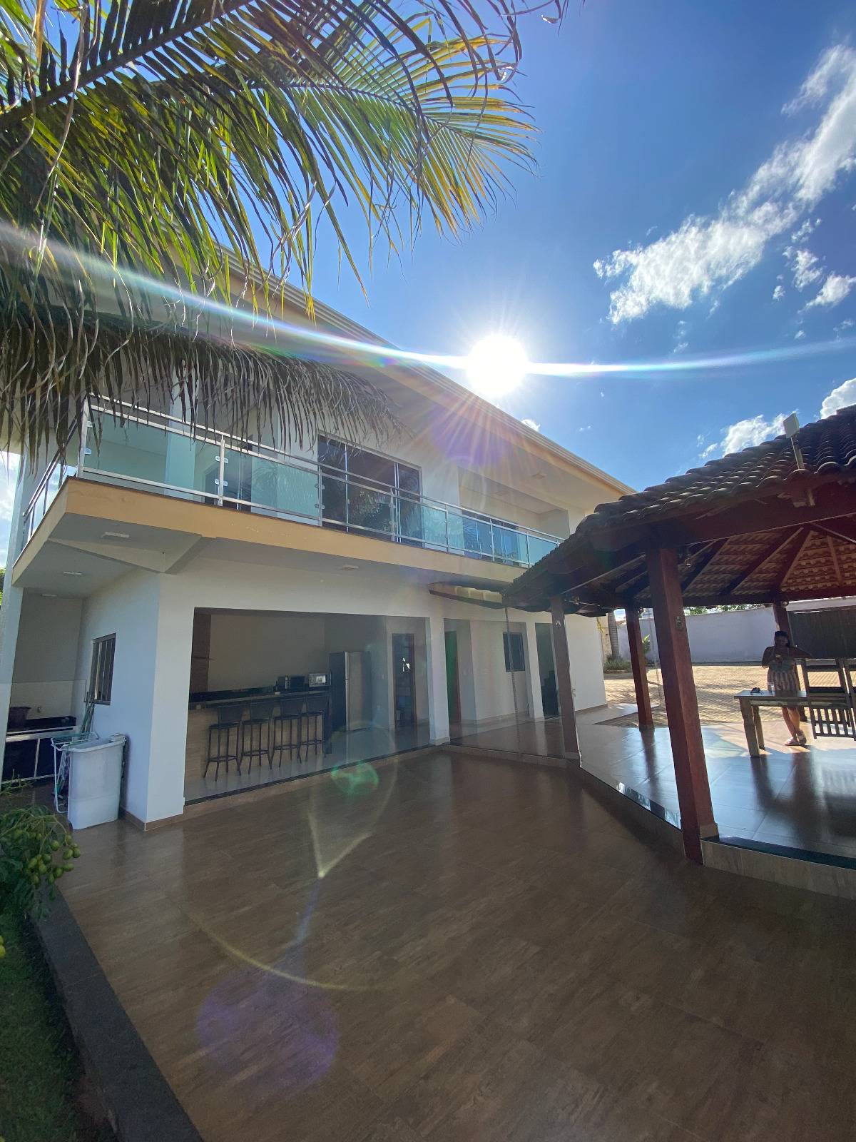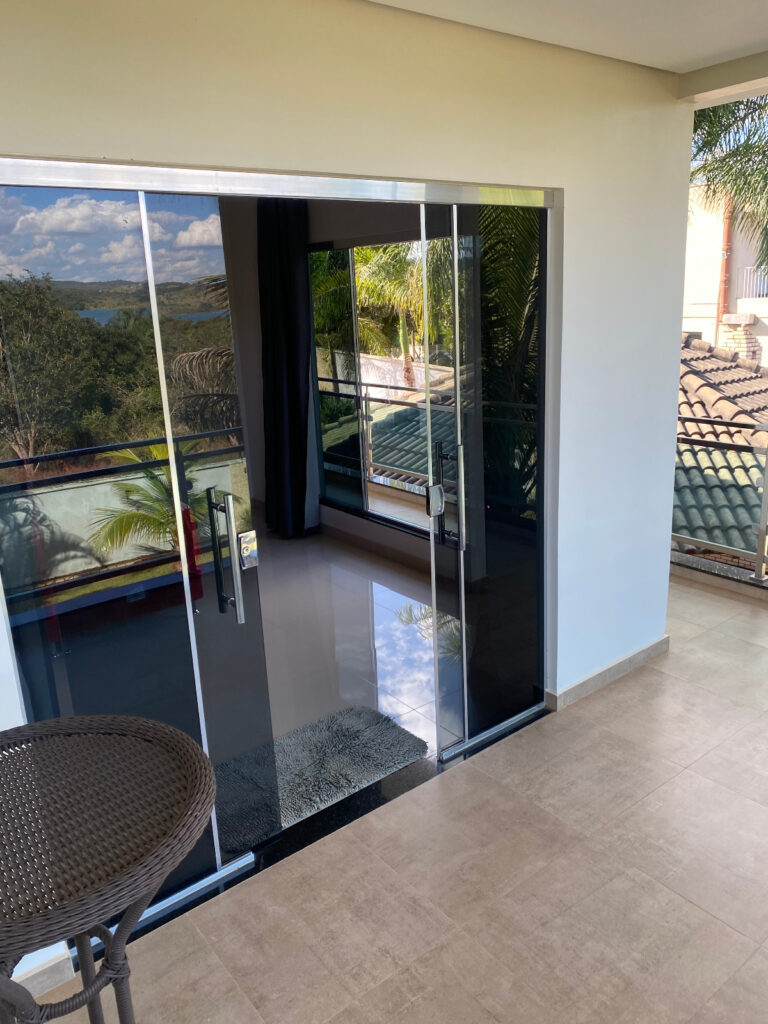 • Varanda em formato de L com fino acabamento em vidro