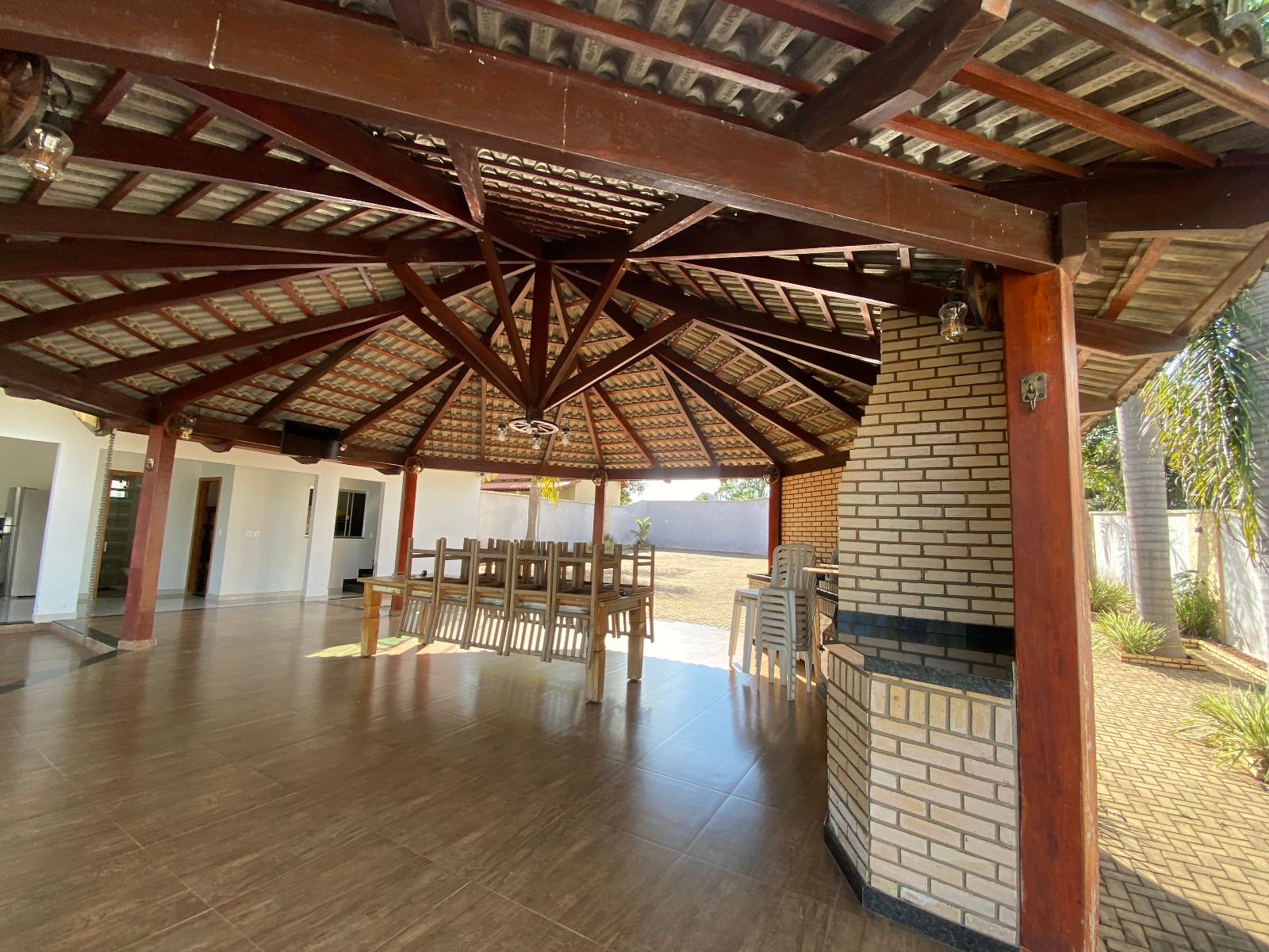 • Bens moveis (TV, mesa de madeira 10 lugares, forno elétrico, camera, bebedouro, micro-ondas, forno elétrico, portão eletrônico, geladeira e cama).